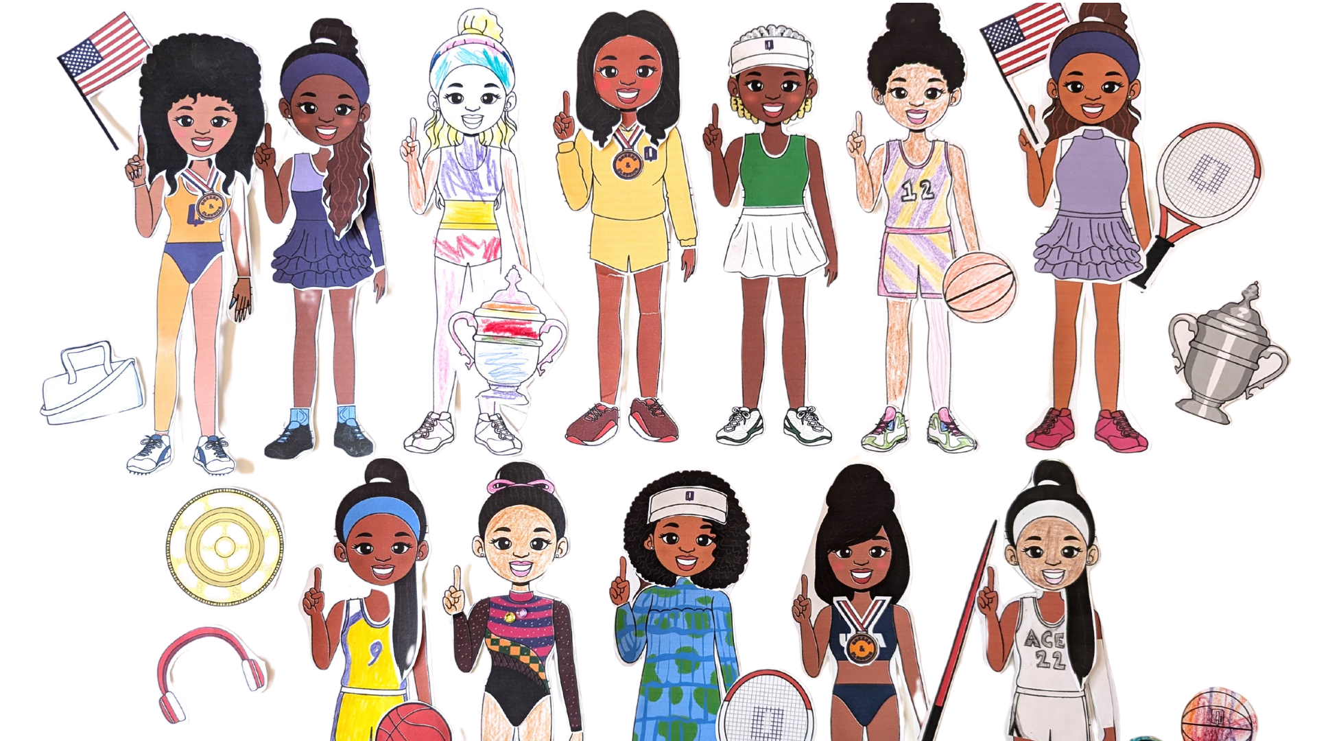 Our Champions in the Making paper athletes reimagine the classic paper doll, updating them with the athletic wear and personal style of sports queens past and present.